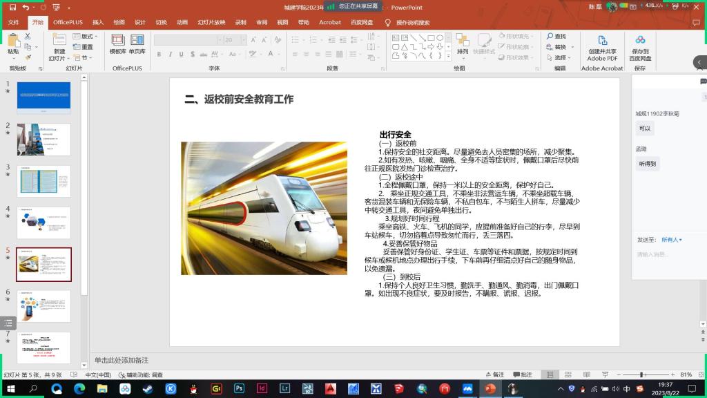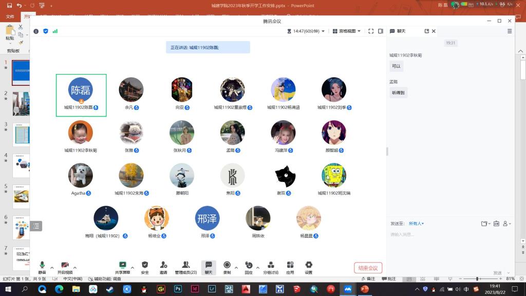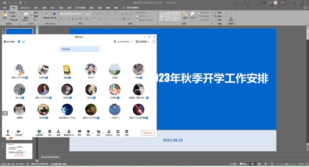 2023年秋季学期开学工作平稳有序开展,学院全部本科生及研究生班级于8月21日至23日通过腾讯会议的形式,开展了秋季开学安全教育主题班会。