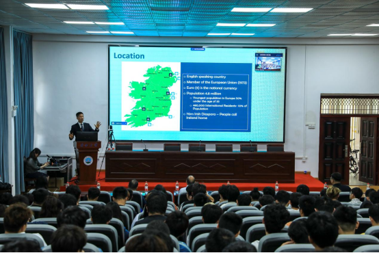座谈会后,学院副院长肖桃李陪同孟晶老师来到15教报告厅,为土木工程中外合作办学三个年级的学生开展留学宣讲,并现场连线爱尔兰香农理工大学国际处主任Mary Simpson,在线解答出国交流政策、国外学习生活、课程学分转换等学生关注问题。