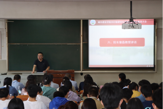 主教107召开了22级研究生见面会暨安全教育大会。学院院长曾磊、院党委书记孙涛、副院长叶长才、土工与工程管理系副主任赵云峰、建筑与城乡规划系副主任徐齐帆、给排水科学与工程系主任黄向阳、科研事务办公室主任张瑞等领导老师,以及分团委书记兼研究生辅导员盖东芳、学工办主任周喆等辅导员和2022级全体新生参与此次会议。会议由院党委副书记秦良斌主持。