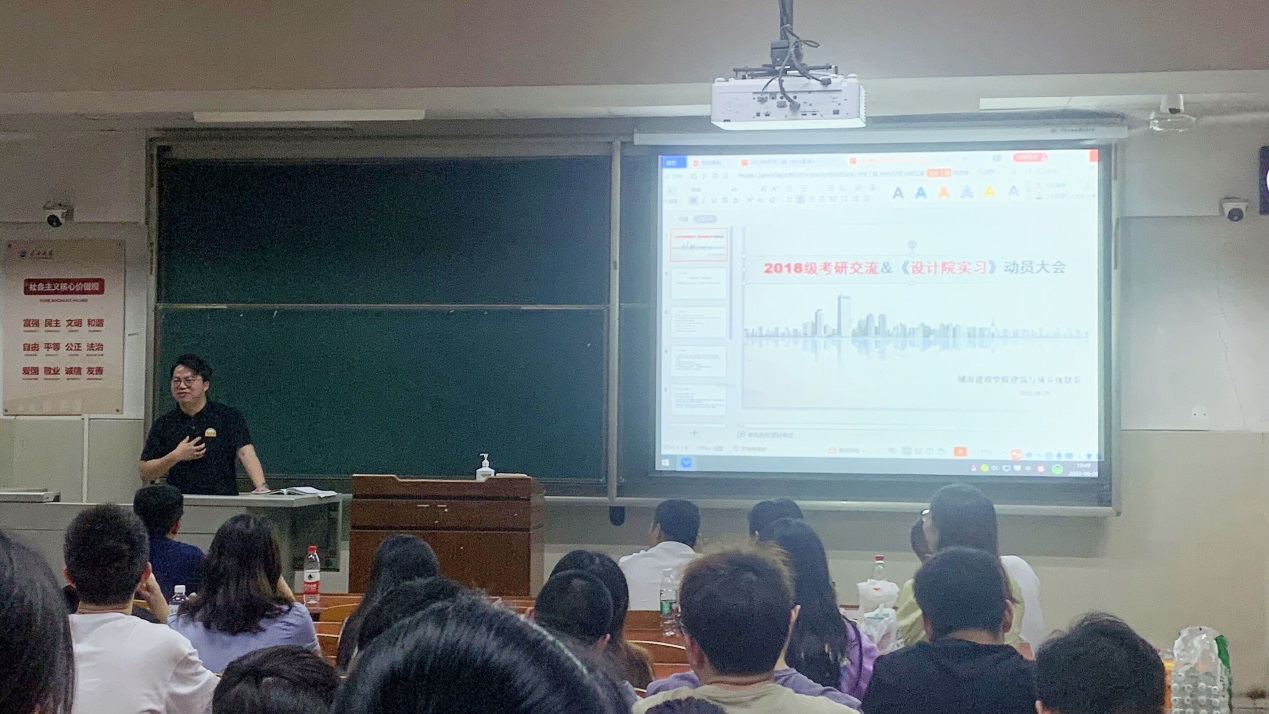 建筑11701班的张斯清着重讲到“保持积极的考研心态很重要!”;城规11702班关心茹分享了考研和保研两手准备的经验;17级学长们还分享了英语学习、快题设计、出国留学等心得体会。多名准研究生学子相继讲述了自己的考研经历并鼓励18级学生不畏困难,勇往直前。