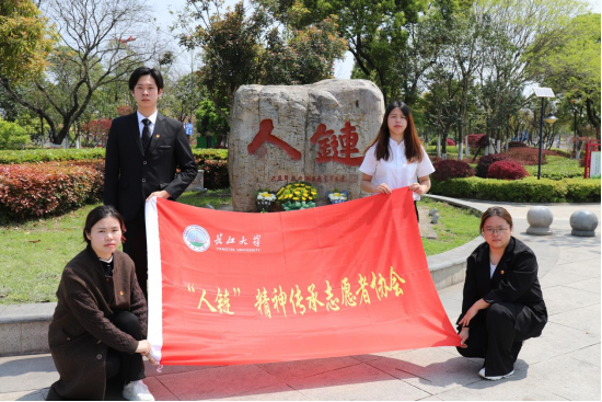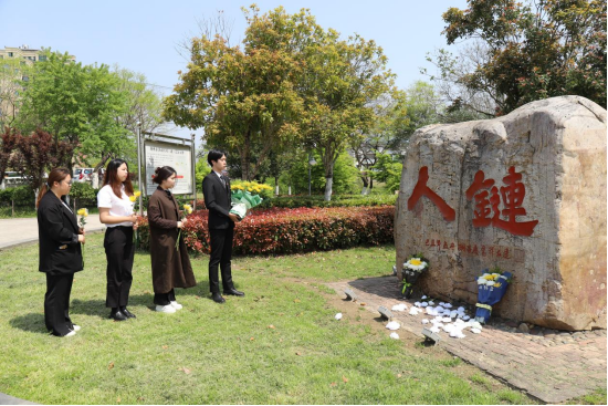 在荆江大堤宝塔湾“人链”纪念碑前,该院辅导员刘安琪带领4名学生代表前来开展江边祭扫活动。大家伫立在“人链”石碑前,低头默哀一分钟,并依次向“人链”纪念碑献花,深切悼念陈及时、何东旭、方招三位烈士。
