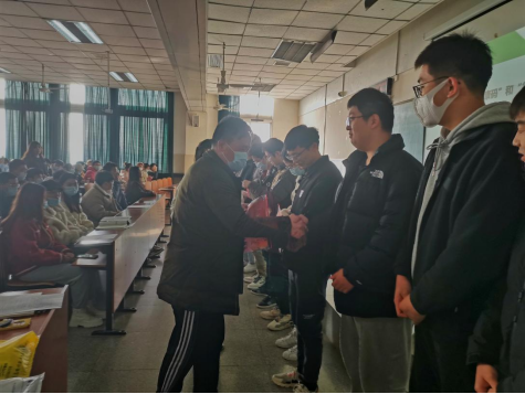 随后,学院党委副书记周俊老师作总结讲话。他介绍了此次活动的重要性。他结合往届考研状况,告诫同学们一定要诚信参考,并祝福同学们取得理想的成绩。最后,周俊副书记为各班学生代表发放了学院制定的爱心礼包,并和大家合影留念。
