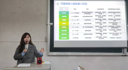 她向大家展示了十二类容易发生心理问题的学生人群,以及学生干部如何陪伴开导出现心理问题的学生,许多心理问题靠沟通就能解决。周喆老师还开导同学们要直面心理问题,“做心理疏导并不是什么丢人的事,恰恰相反,直面自己的问题是勇敢者的行为。”