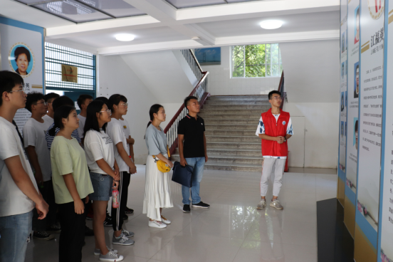 的杰出校友事迹。大家边听边记,并不时向志愿者交流询问。在“10·24”英雄集体三位烈士的展板前,大家纷纷驻足,详细了解“10·24”救人事件中我校牺牲的陈及时、方招、何东旭等3位优秀学长的英雄事迹。