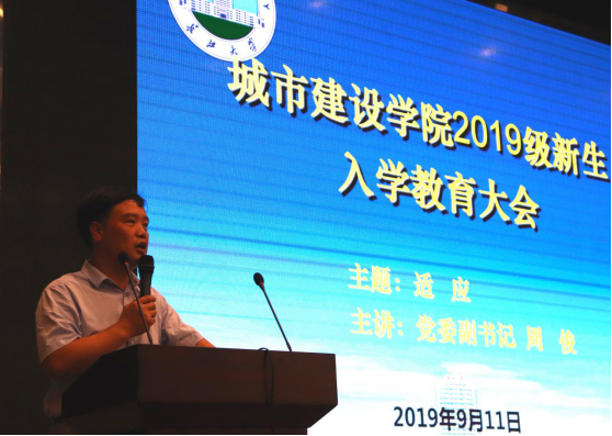 学院2019级共近400名大一新生聆听了周俊副书记的入学教育报告。来自建筑类31901班的冯建萍同学在会后讲到,周书记的报告对自身学习规划具有较强的指导意义,让自己初进大学就感到目标清晰、自律自强的重要性,并能主动适应大学生活。