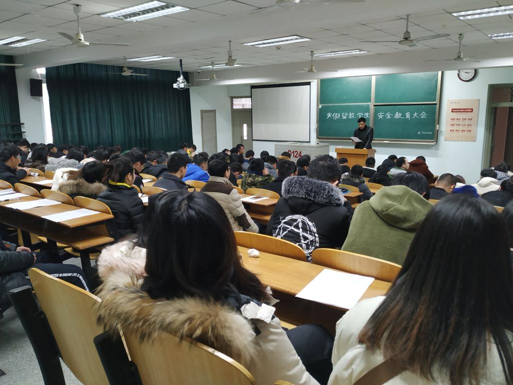 (通讯员 颜学俊)2019年1月19日下午14:30,大陆色情网 寒假留校学生安全教育大会在13教D124召开,学院党委副书记周俊,学工办主任颜学俊,团委书记盖东芳,辅导员周喆、刘熠、谢炜、李敏锐和全体寒假留校学生参加会议,会议由颜学俊老师主持。