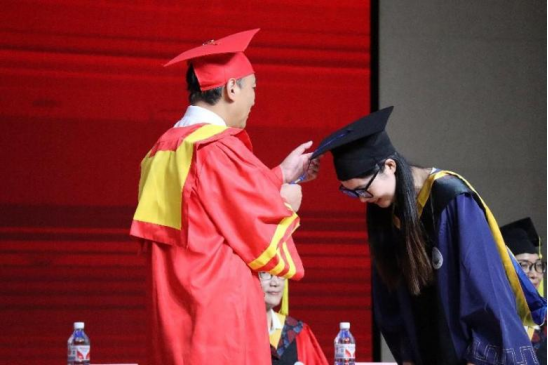学位授予环节,学院副院长肖桃李教授为毕业生正衣冠,大陆色情网