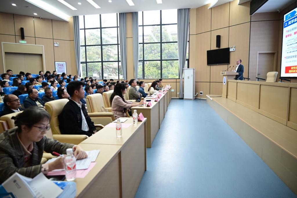 会上,肖桃李院长从导师助研金发放、奖学金助学、导师第一责任主体、导师选聘与学位论文抽检、科研仪器管理等方面介绍了学院的相关规章制度,并针对导师们易忽略的各培养环节和重要节点做了回顾和强调,同时分析了近几年毕业研究生的就业情况。会议强调,研究生导师作为研究生培养质量的第一责任人,须重视教育和引导研究生恪守学术道德,杜绝学术不端行为,导师要起到表率作用。同时对2024级研究生们在学术诚信、学习态度、时间管理、团队合作、遵守规制方面提出要求,并希望同学们能遵守规制、勇于创新、全面发展、建立良好师生关系、传承长大精神。他激励同学们,要重创新,塑能力;促实践,练身手;提素质,全发展;引方向,铸未来。