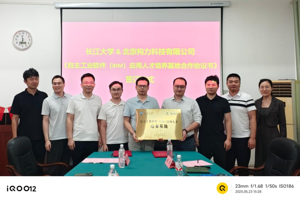 在智能建造、信息化建设、自主工业软件(BIM)应用人才培养、学生就业等方面工作。楚仲国总经理介绍构力科技并说明本次合作意图,表达了构力科技对高校的支持和校企合作前景。随后黄向阳与楚仲国分别代表校企双方进行了基地签约和揭牌仪式。