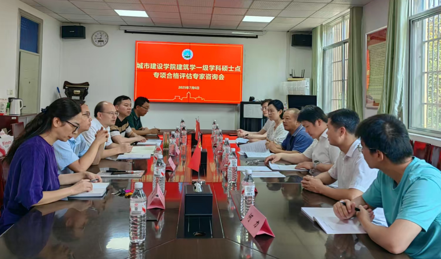在9教208召开建筑学学位授予点专项合格评估校外专家咨询会。会议特邀华中科技大学建筑与城市规划学院万敏教授,南京林业大学风景园林学院院长邱冰教授参加。院领导班子及学位点全体教师参加,会议由院长肖桃李主持。