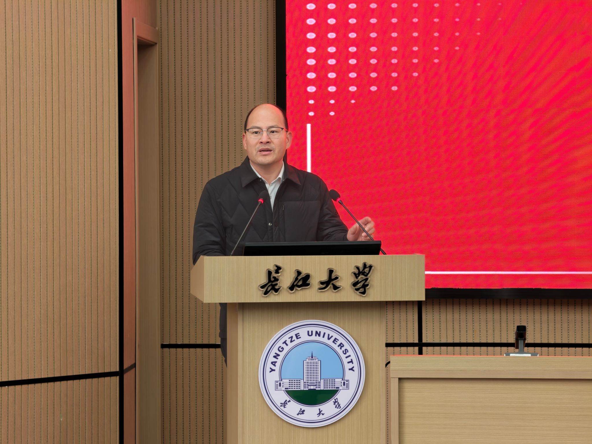 在石油报告厅隆重召开2025年工作总结表彰暨2026年工作动员会。会议由学院党委书记谌姿主持,全体教职工参会。