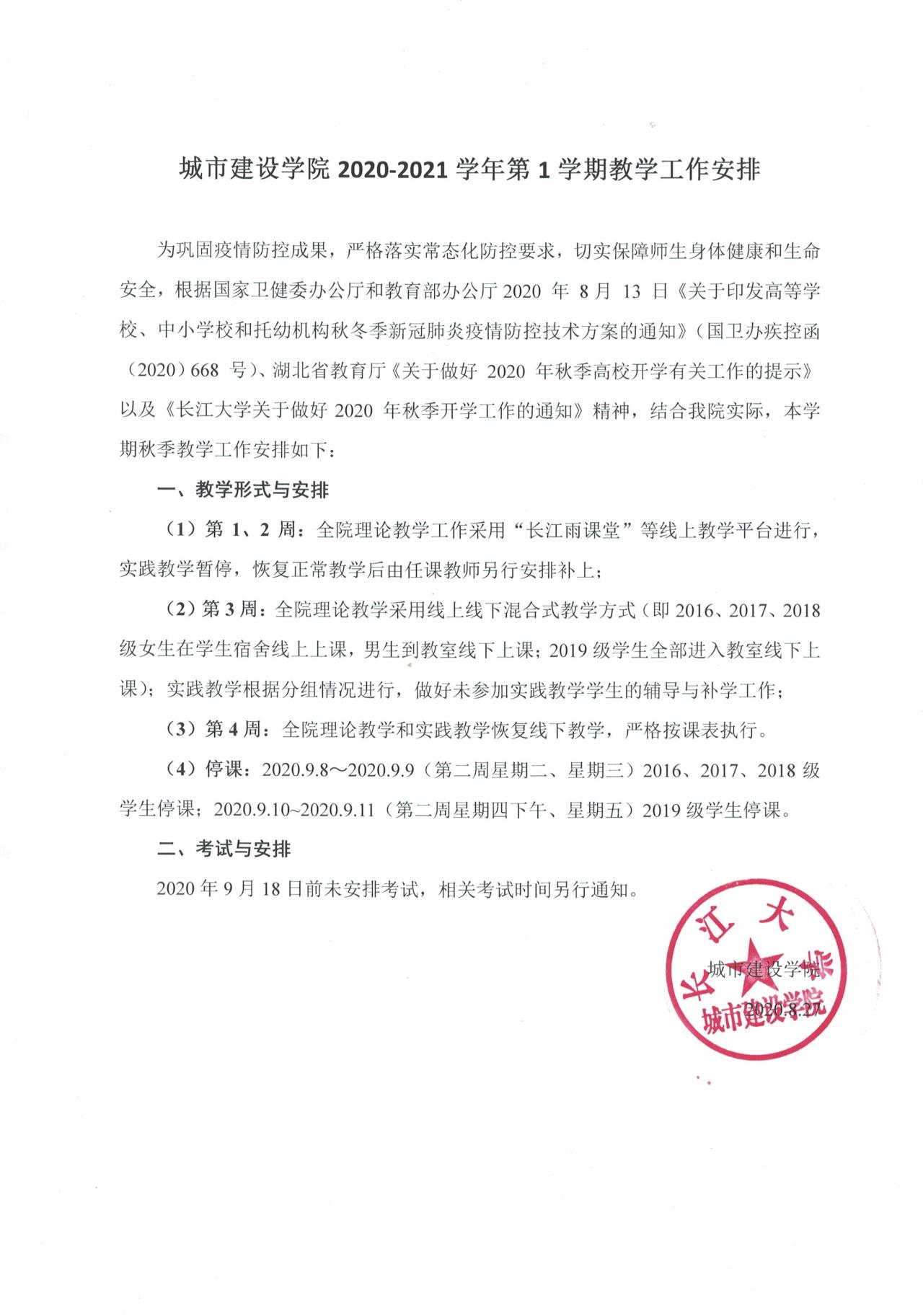 大陆色情网 2020-2021学年第1学期教学工作安排