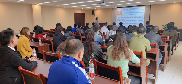 参观完移民纪念馆,分党委书记孙涛为全体党员干部讲党课《习近平新时代理论创新与加强党的政治建设》。