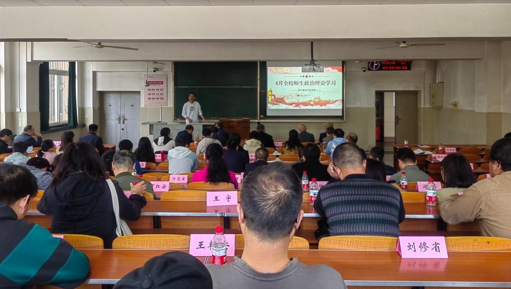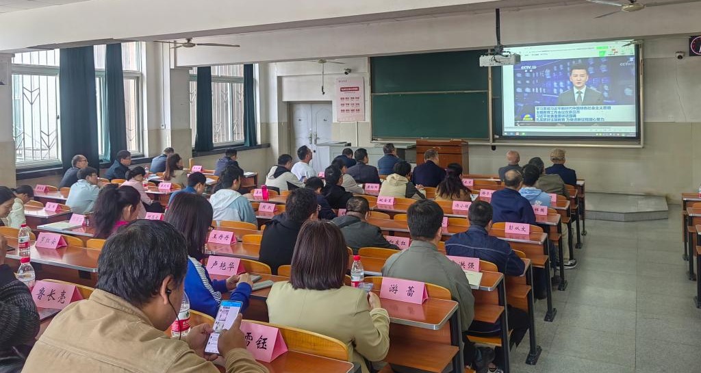 全体教工在主教107开展4月政治理论学习,分党委书记彭飞主持学习活动。