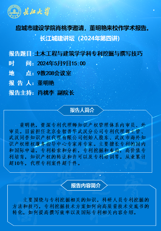 长江城建讲坛2024年第四讲:土木工程与建筑学学科专利挖掘与撰写技巧