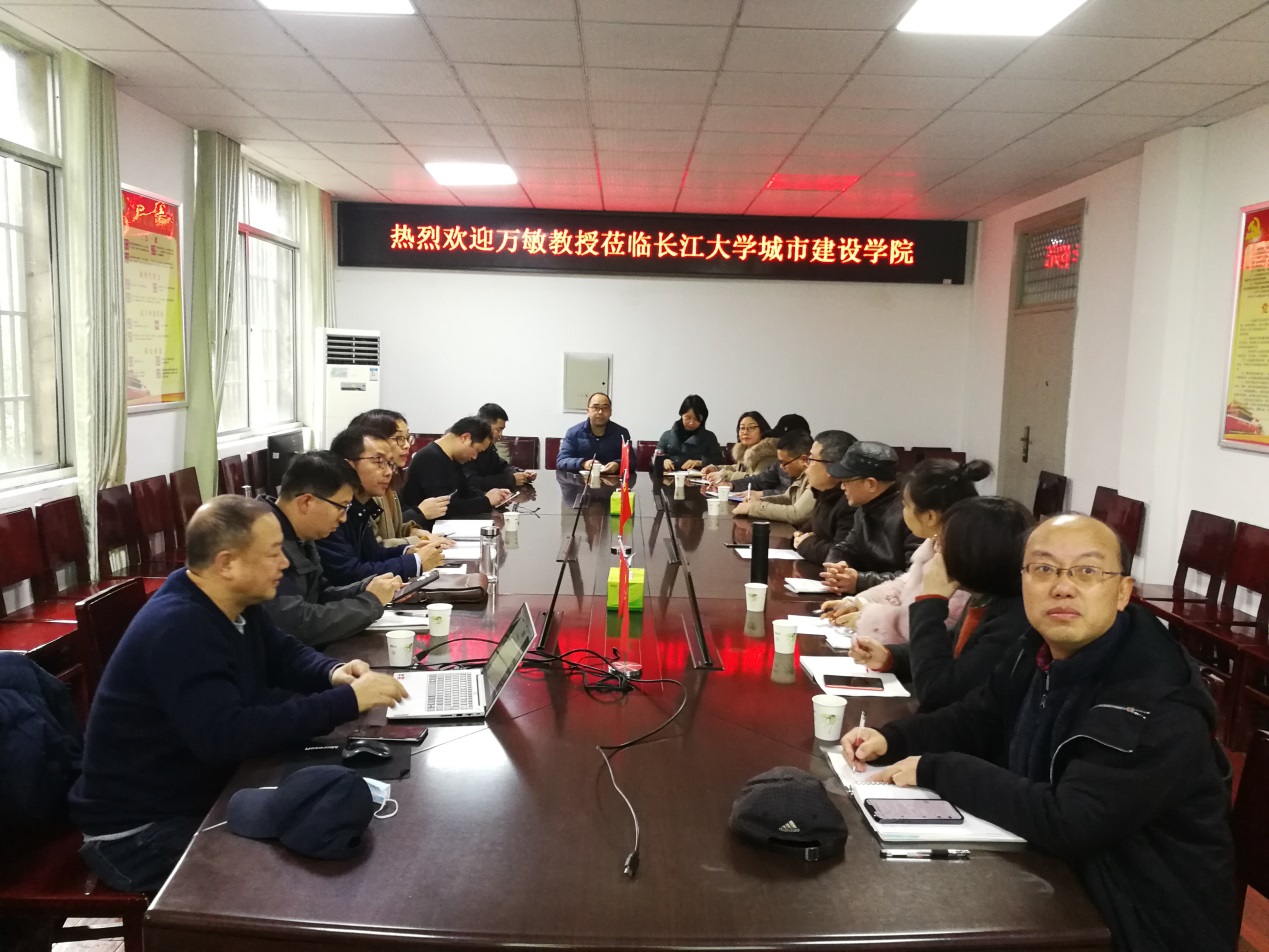 在9教208会议室举行了2022年长江城建讲坛第四讲的学术讲座,华中科技大学建筑与城市规划学院景观学系博导、系主任,国家一级注册建筑师万敏教授做客讲坛,并为学院师生作了题为“运筹帷幄,决胜千里——谈国金的课题设计与创新”的学术讲座,学院30余名教师参加了活动。