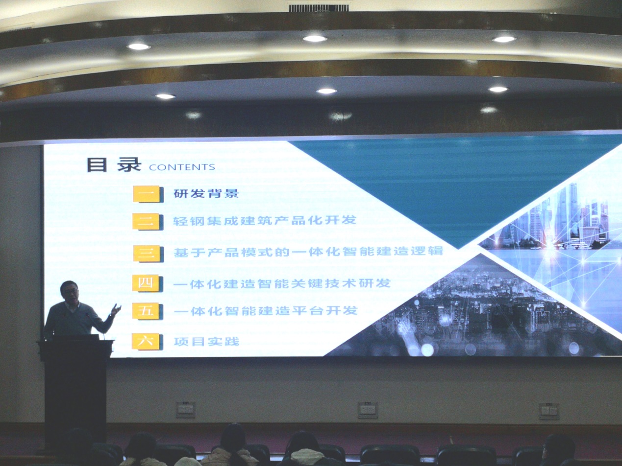 讲座中,李元齐教授通过精准的数据与直观的图示具体介绍了研发背景、轻钢集成建筑产品化开发、基于产品模式的一体化智能建造逻辑、一体化建造智能关键技术、一体化智能建造平台开发及相关的项目实践等方面阐述了建筑一体化智能建造技术的发展前景,讲座结束,李元齐教授解答了师生们提出的各种问题。