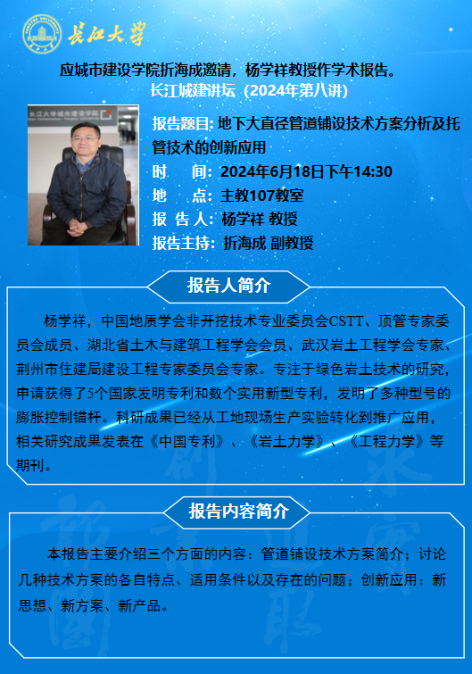 长江城建讲坛2024年第八讲:地下大直径管道铺设技术方案分析及托管技术的创新应用