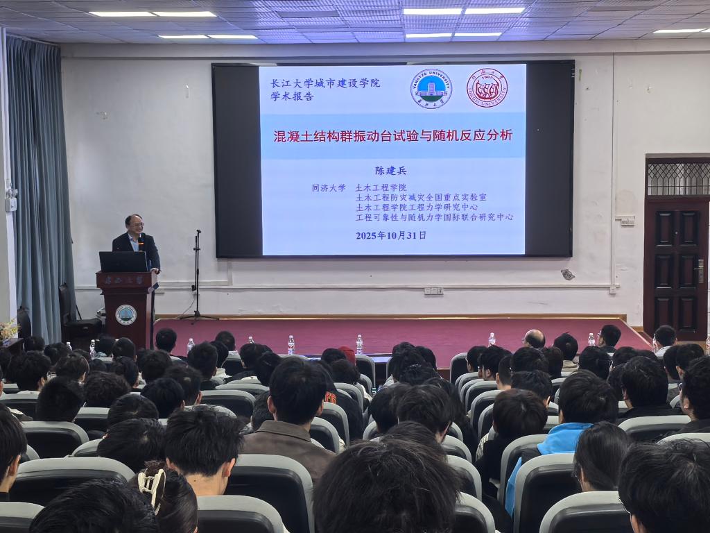 (通讯员 秦源 焦扬)为拓宽学术视野、提升科研创新能力,10月31日上午,应院长肖桃李邀请,国家杰出青年科学基金获得者陈建兵教授做客“长江城建讲坛”,在东校区15教国际交流处一楼报告厅带来题为“混凝土结构群振动台试验与随机反应分析”的学术报告。活动由院长肖桃李主持。