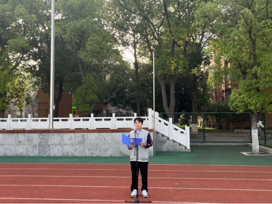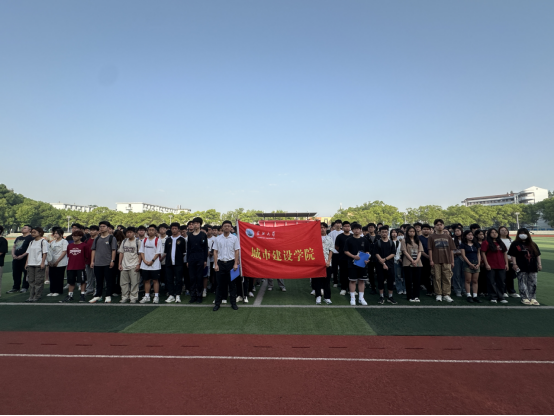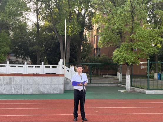 在西校区田径场举行第十二周升旗仪式。学院22级辅导员杜琛、23级辅导员袁子昂及2023级全体本科生参加,仪式由土木国际32303班关九阳主持。