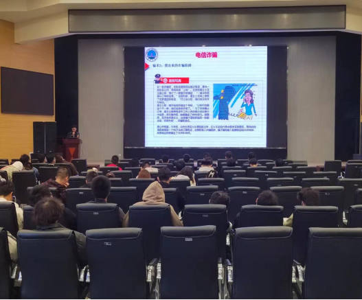 姜硕琛老师从什么是电信诈骗、电信诈骗的常见形式、如何识别防范电信诈骗三个方面进行深入的讲解,让同学们充分了解网络诈骗的特点,提高了同学们的辩识能力和防范意识。他还向同学讲述了许多有关网络诈骗的案例,提高了同学们应对网络诈骗的自我预防、自我保护和自我应对能力。