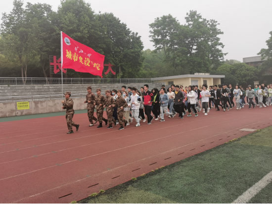 团委及学生会在操场上组织全院18、19级学生进行“万人健康跑”,由“退役士兵之家”的退役士兵们领跑,学院党委副书记,全体辅导员老师前往现场监察。