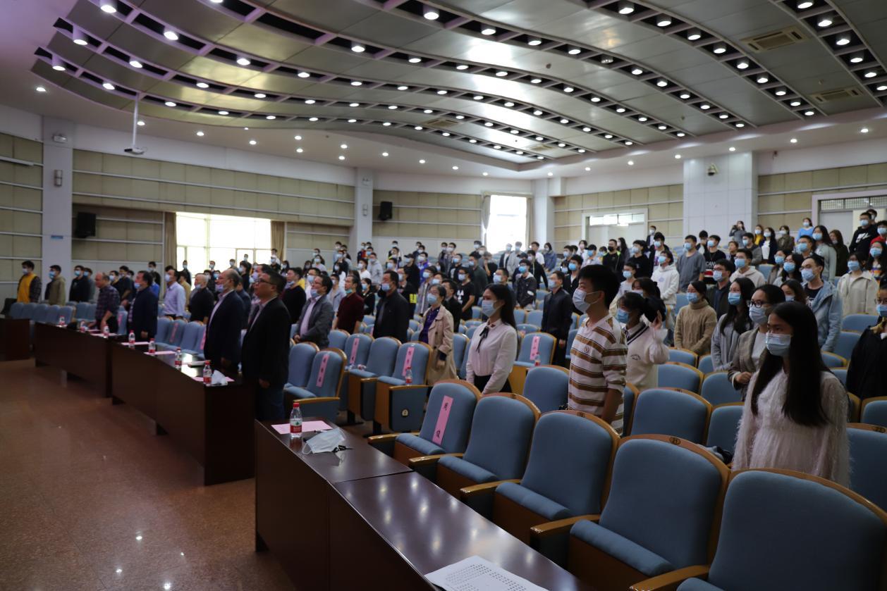 大会开始后,全体起立,奏唱国歌,举行拜师仪式,全体研一新生起立,面向导师三行拜师礼,一寓意感谢导师﹑辛勤教导,二寓意认真学习科研技能,三寓意潜心研究﹑早出成果。