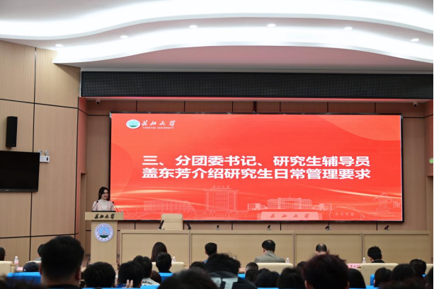 团委书记、研究生辅导员盖东芳细致阐述了研究生日常管理要求,针对未来研究生生活规范做出了详尽指导与关怀,希望同学们严格遵守相关要求,在未来三年拥有充实且有意义的研究生生活。