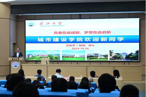 院长肖桃李进行讲话。他首先对新生的到来致以热烈欢迎,接着全面且系统地介绍了学院的基本情况以及研究生培养要求。他激励同学们,要重创新,塑能力;促实践,练身手;提素质,全发展;引方向,铸未来。