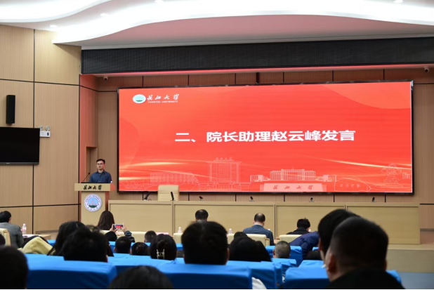 院长助理赵云峰作为教师代表发言。他以自身经历为切入点,拉近与同学们的距离,鼓励新生勇攀学术高峰,探寻知识奥秘,开拓学术视野。