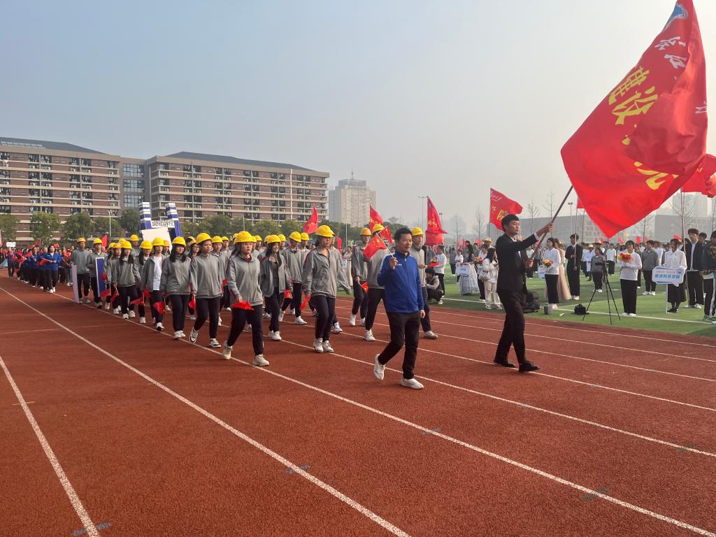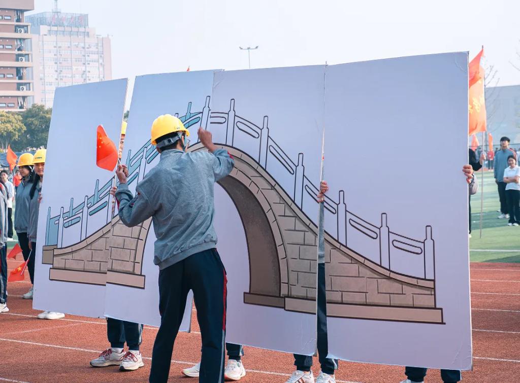 同学身着统一服装,佩戴着象征学院特色的黄色安全帽。整个方阵步伐整齐,气势浩荡。“城市之光,城建启航,运动赛场,激情飞扬”,铿锵有力的口号,更是响亮地回荡在操场上。这简短的语句不仅生动描绘了城建学子昂扬向上、奋勇拼搏的精神风貌,而且展现出了城建学子实践实干的独特风采。