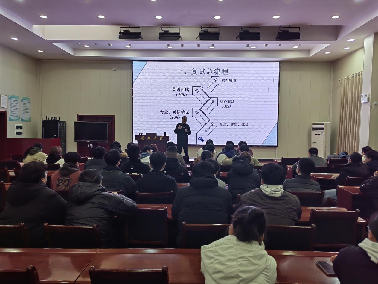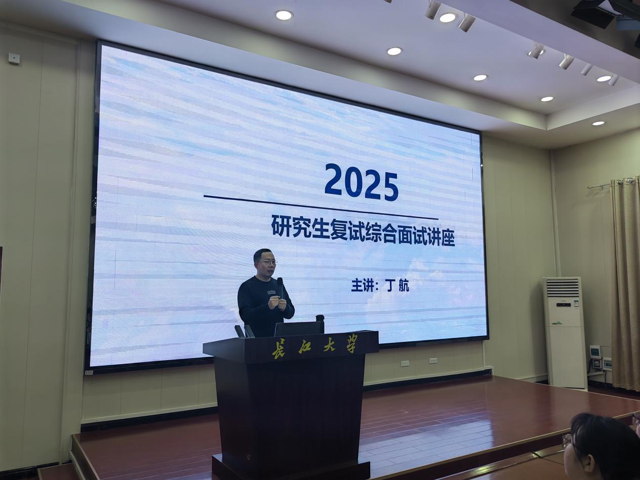 特邀考研名师丁航在东校区就业宣讲大厅为2025年考研学生举办复试综合面试指导讲座。2021级和2020级考研学生参加了此次专题培训。