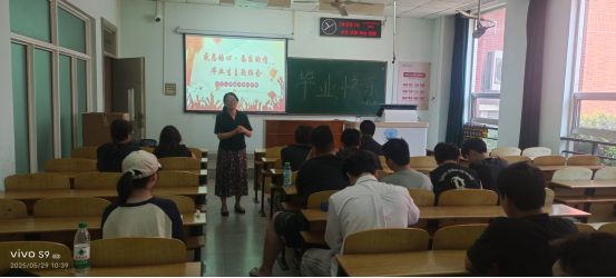 针对毕业生群体,班主任在班会上专门布置了安全文明离校工作,细致提醒学生妥善处理个人物品,严格遵守离校流程,做好离校期间的人身及财产安全防护,确保离校过程安全顺利。