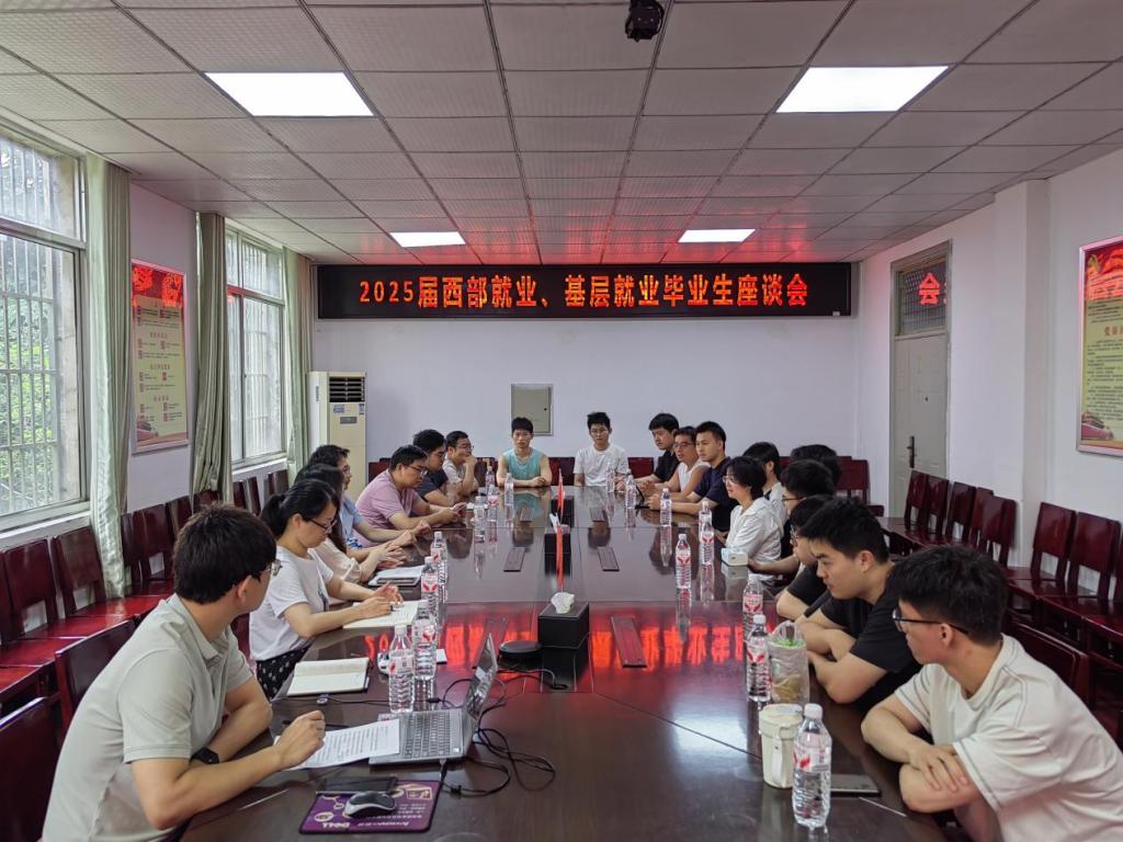 在9教208会议室召开2025届西部就业、基层就业毕业生座谈会。学院党委副书记周洁如,2025届毕业生班主任黄庆瑞、吴小刚、郝勇、何云龙、刘流,辅导员魏民生、杜琛,以及31名即将奔赴西部、扎根基层的2025届毕业生以线上线下相结合的方式参会,会议由杜琛主持。
