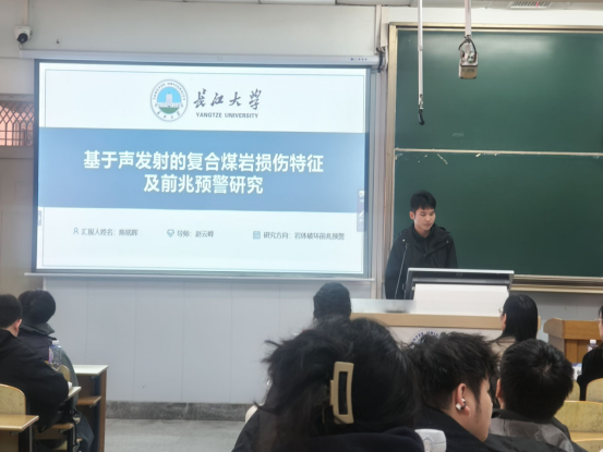 的黄炜皓同学系统阐释了高质量文献综述的撰写逻辑与发表策略,为同学们开展系统性学术综述提供了清晰指引;陈铭辉同学展示了基于声发射技术的复合煤岩损伤监测与预警研究,为矿山安全防控提供了新的技术视角。