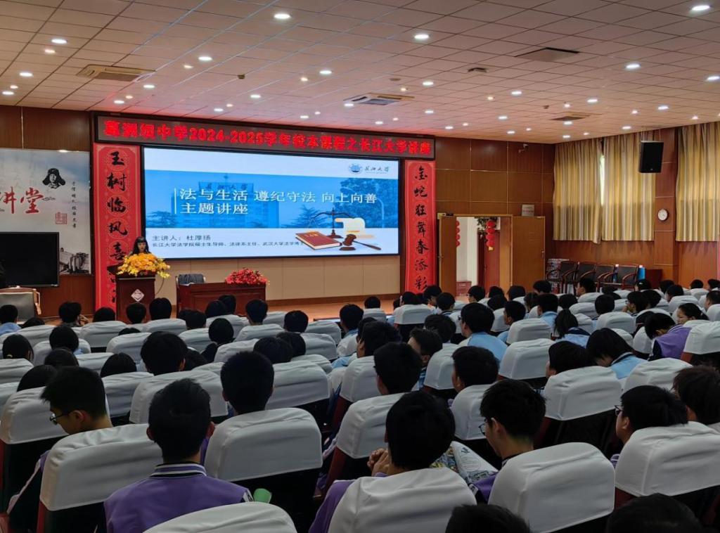 应学院邀请,3月27日,法学院杜厚扬教授与学院招生专干杜琛一同前往葛洲坝中学,为该校200余名学生开展《法与生活》知识普及讲座。杜厚扬教授结合案例,生动阐释法律与日常生活的紧密联系,激发学生对法学专业的浓厚兴趣。