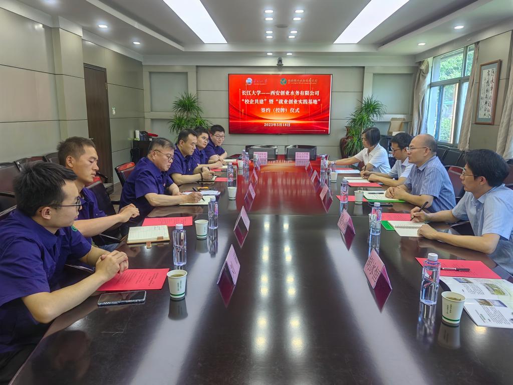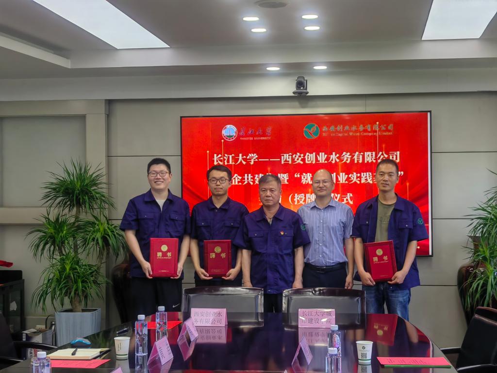 一行到访表示热烈欢迎。李建华总经理详细地从西安创业水务公司的发展历程、业务范围、人员规模及企业优势对公司进行了总体介绍,期待双方在产、学、研等方面加强合作。肖桃李副院长从学院整体概况、办学特色等方面介绍了学院现状,表达了在人才培养、科学研究、就业创业等方面与企业开展深度合作的意愿。随后,双方举行了“校企共建”暨“就业创业实践基地”签约(授牌)仪式,肖院长现场为西安创业水务有限公司培训中心三名骨干教师颁发了“学生就业创业实践指导教师”聘书。座谈结束后,公司培训部副经理侯成带领大家参观了北石桥污水处理厂模型和学生实习培训教室,宿舍,食堂等,学院对企业为学生提供的良好学习生活环境表示认可。